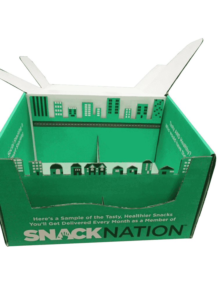 SnackNation, a division of Nutrition Without Borders, delivers healthy snacks to these suffering offices They charged Ernest Packaging to create a sample box that would look fun and appealing to new customers.